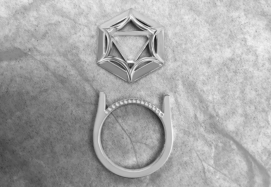 We carefully cast your 3D model in the precious metal of your choice. Once successfully cast, we clean up and assemble the jewellery piece, meticulously set the stones and would add hand engraving or vintage milgrain details at this time. Then your piece gets its final polish. Your gleaming, one-of-a-kind jewellery is nearly ready for collection.